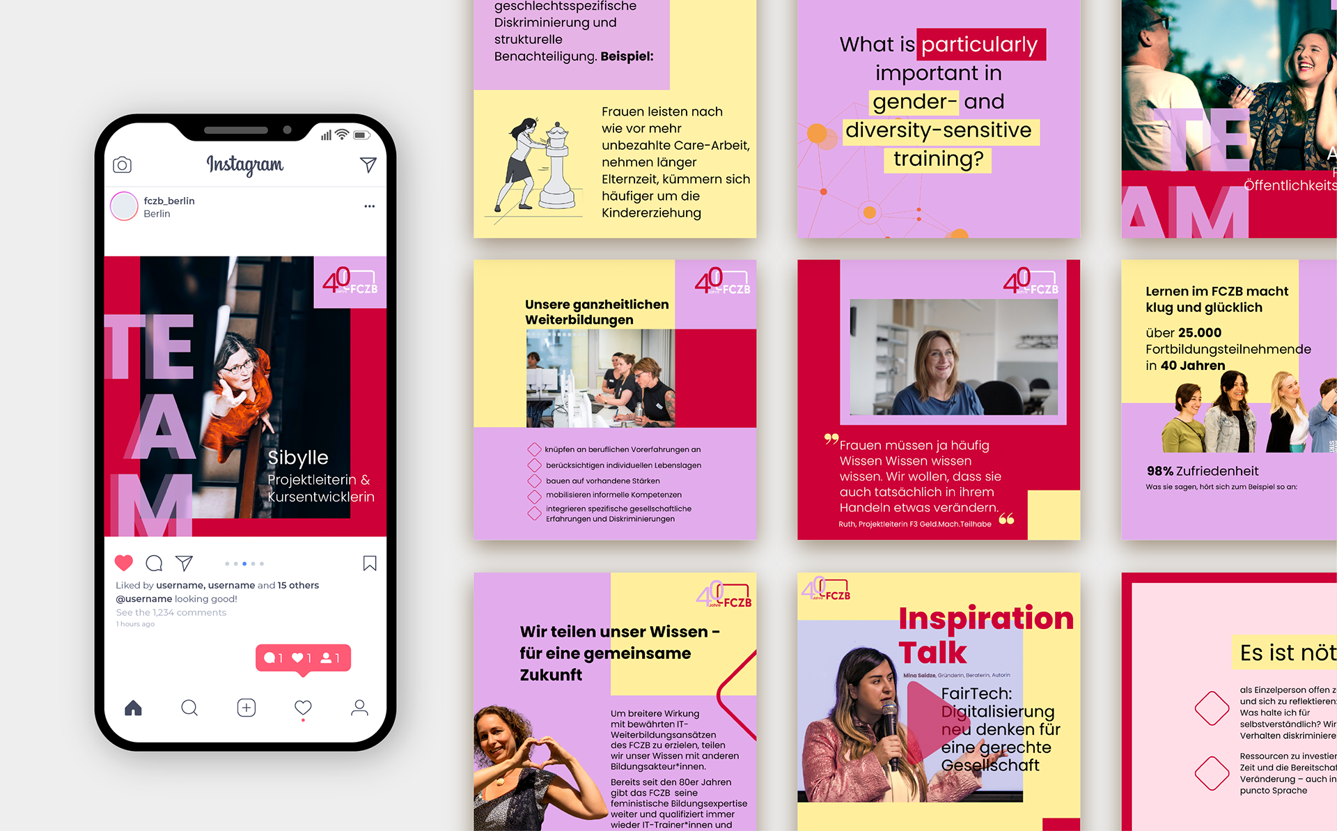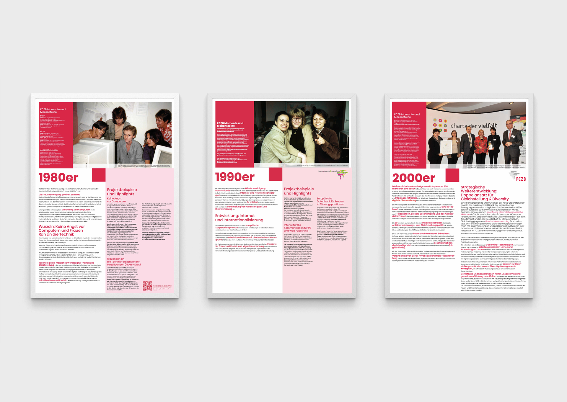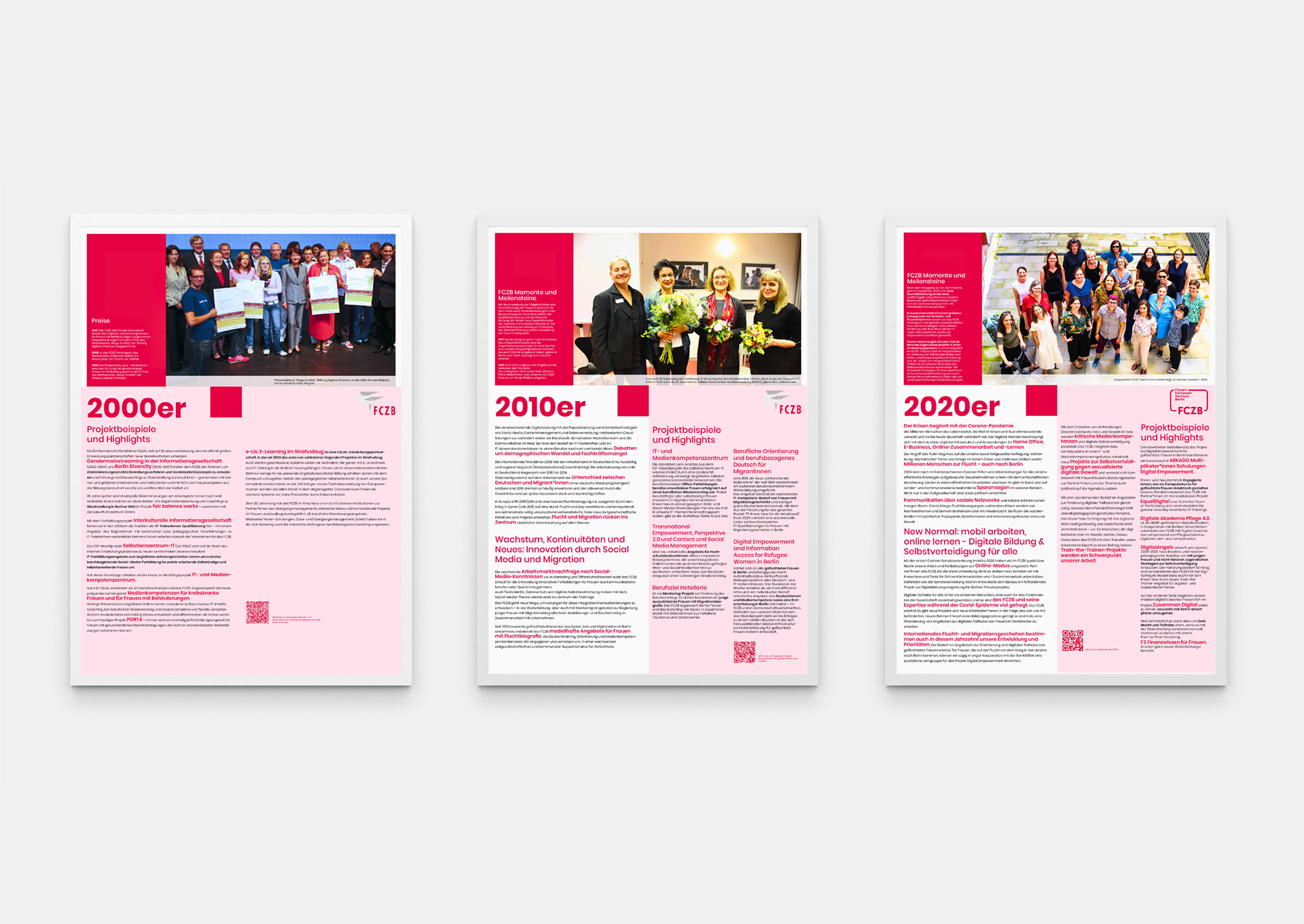 Zum 40-jährigen Jubiläum des FCZB im Jahr 2024 war ich verantwortlich für die visuelle Präsentation der Geschichte, Werte und Erfolge der Organisation. Ich gestaltete ein Jubiläumslogo und führte eine dreimonatige Social-Media-Kampagne mit Foto-, Animations- und Story-Posts durch. Parallel dazu entwarf und realisierte ich eine Reihe von WordPress-Webseiten, die verschiedene Themen der Jubiläumskampagne vorstellten. Zum Jubiläumstag gestaltete ich sechs Infotafeln im Format A0. Diese laden die Gäste ein, sich einen Überblick über die Geschichte des FCZB und seine Entwicklung seit den 1980er-Jahren zu verschaffen – mit einer visuellen Zeitreise durch vier Jahrzehnte.
