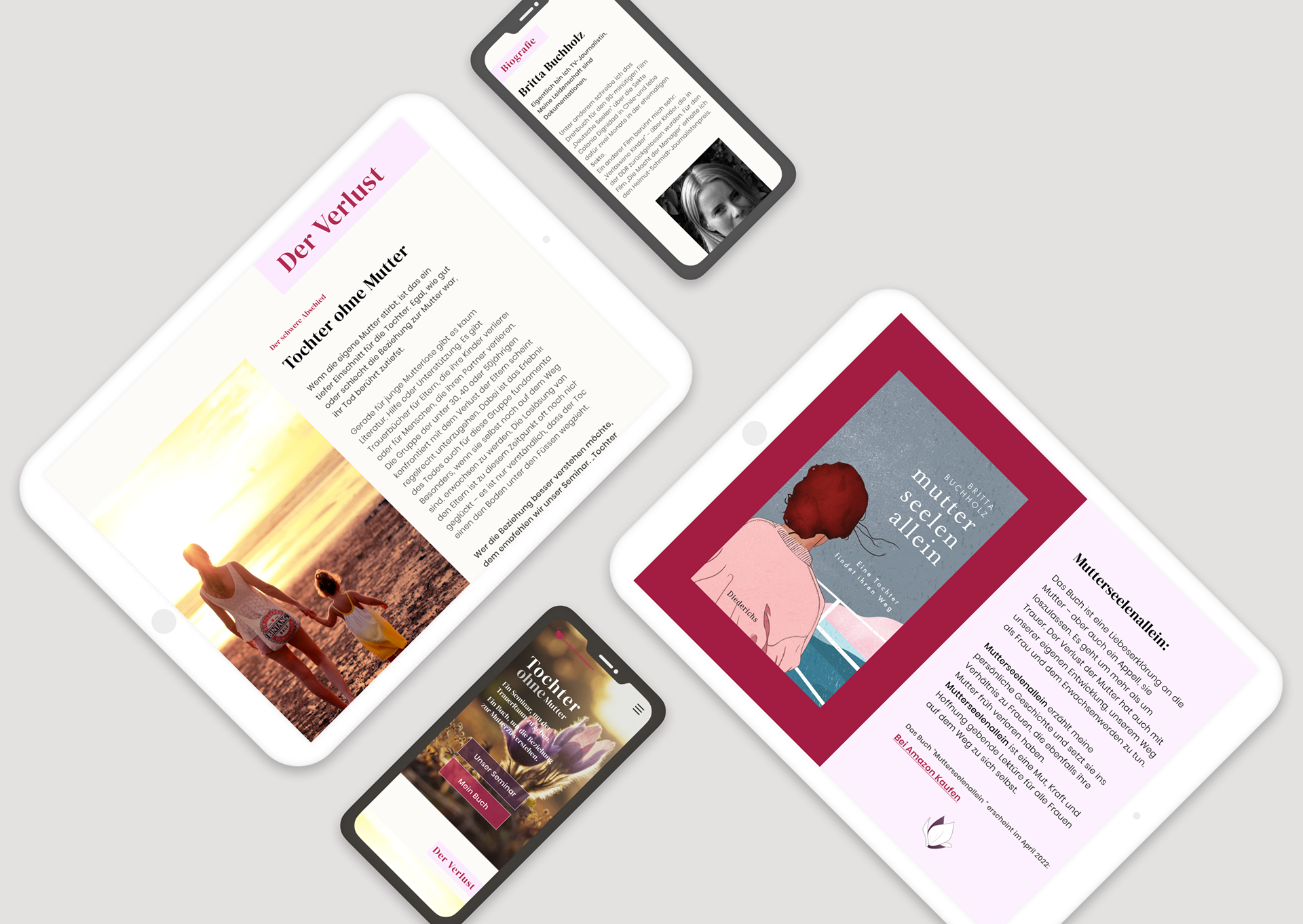 Ich habe die responsive WordPress-Website tochterohnemutter.de mit Elementor gestaltet und umgesetzt. Für dieses sensible Thema – ein Angebot für Töchter, die ihre Mutter verloren haben – entwickelte ich eine ruhige und emotional ansprechende visuelle Sprache. Farbwahl, Typografie und Layout wurden bewusst gewählt, um Wärme, Klarheit und Vertrauen zu vermitteln. Der Fokus lag auf guter Lesbarkeit, barrierearmer Nutzerführung und einer responsiven Darstellung auf allen Endgeräten. Die Gestaltung verbindet Einfühlungsvermögen mit klarer Struktur – stets mit Blick auf die Bedürfnisse der Nutzerinnen.